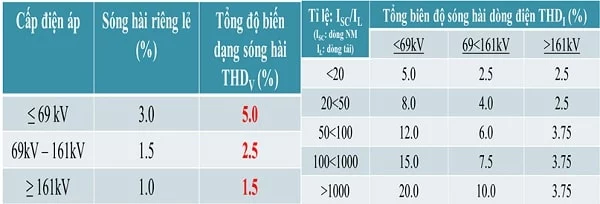 - Trong trường hợp đầu nối từ cấp điện áp trung hoặc đầu nối có công suất từ 10kW đến 50kW, giá trị dòng bậc cao không được vượt quá 20% phụ tải.
