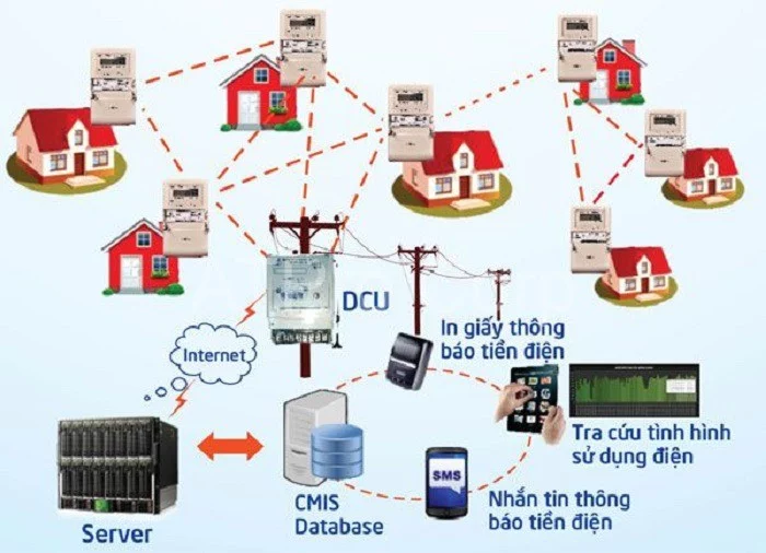 Hệ thống đọc chỉ số công tơ tự động – mỗi công tơ được gắn thiết bị truyền dữ liệu, tự động thu thập chỉ số định kỳ và truyền về hệ thống quản lý trung tâm. Thay thế hoàn toàn việc đọc công tơ thủ công, giảm sai sót và chi phí nhân lực.